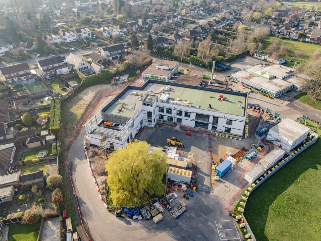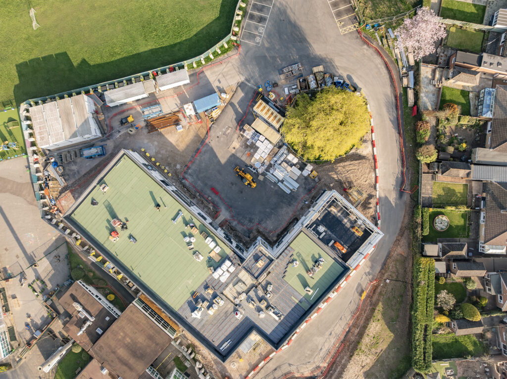 Working within a live school environment has required careful coordination, particularly given the site’s constraints. These include challenging level changes, a single access point, limited space for construction logistics, and the need to retain existing playing fields. Despite these challenges, the project continues to move forward in line with programme.