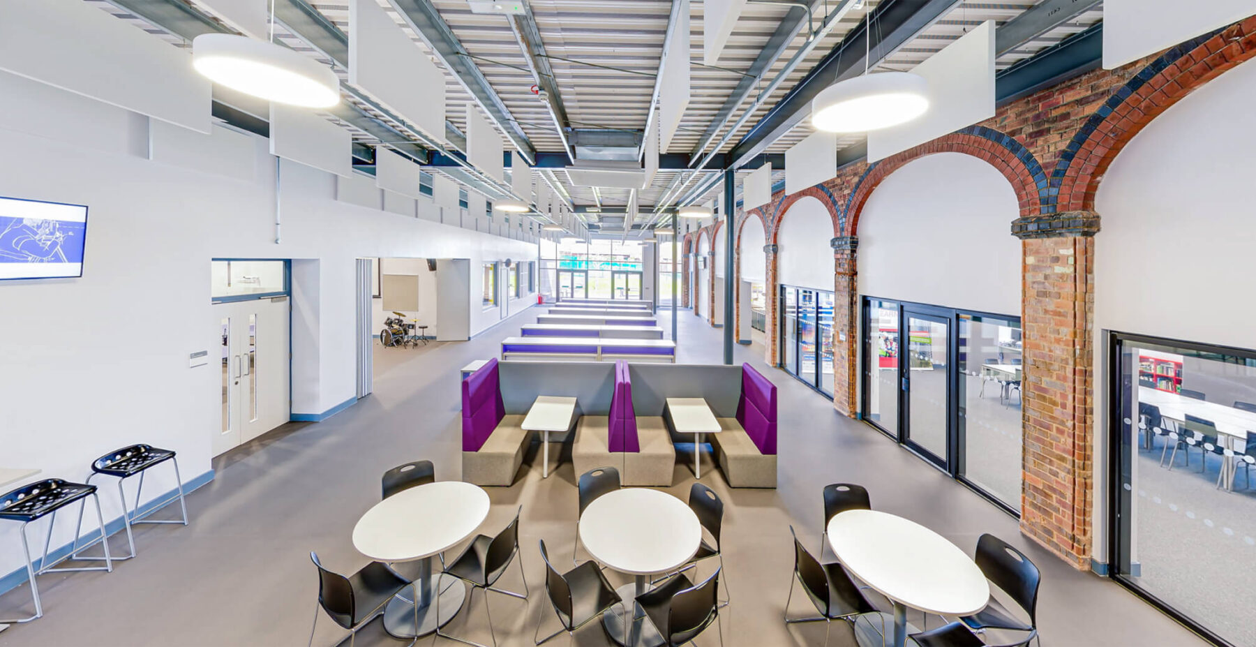 We were commissioned alongside Thomas Vale Construction to deliver this newStat UTC to accommodate 600 students, aged 14-19 who receive unparalleled training in architecture, interior design, surveying, civil engineering, construction management, BIM engineering and construction-focussed IT. Students learn in a variety of state-of-the-art design studios, a large construction workshop, engineering and science labs, seminar rooms, a lecture room, innovation lab, 3D visualisation suite and a ‘maker space.’ External space has been set aside to allow students space to undertake construction projects and recreational activities.